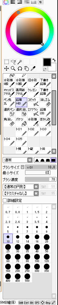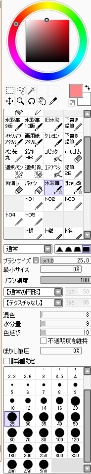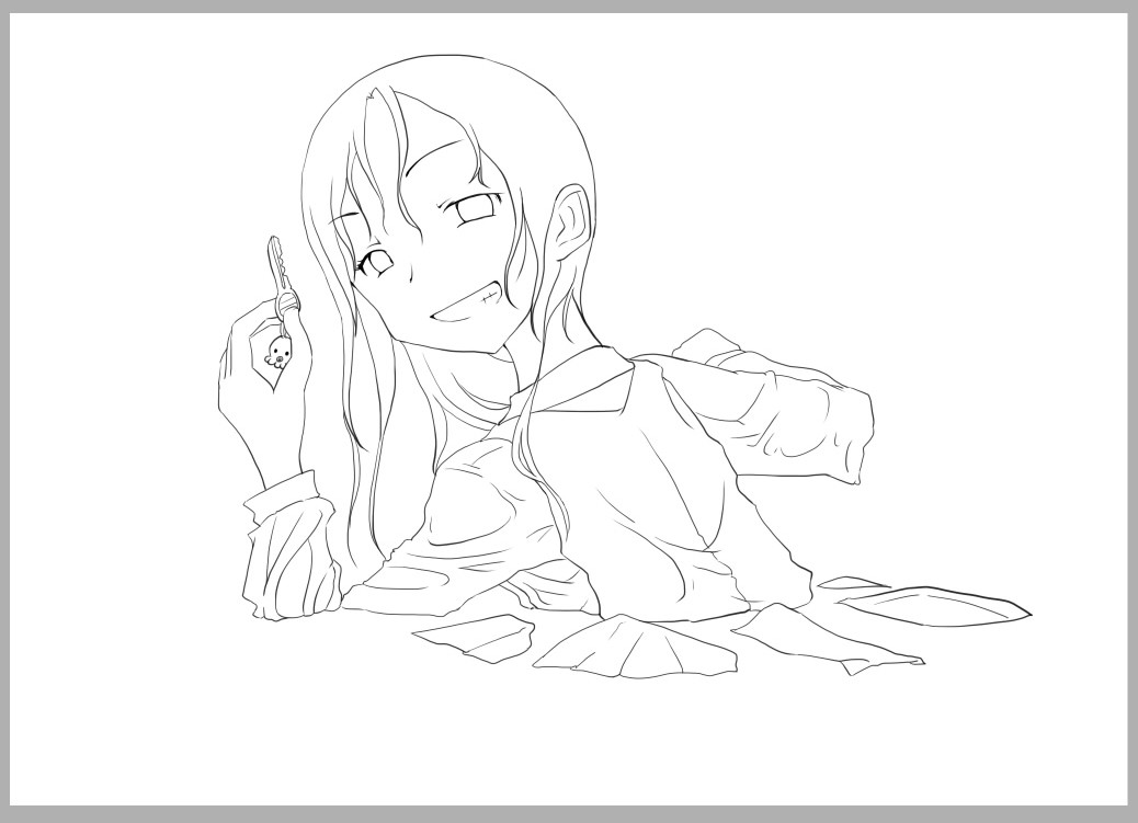 つづき~ペン入れ 2010年10月01日 イベント 2 ペンを入れる、設定は濃度100%黒色で、手ぶれ補正を4~7くらいかけてササッと。いつも太くなってしまうので、細めにするのを意識する。大体感覚としては、Gペンよりもカブラペンとかスクールペンみたいな、あんまり抑揚が無い感じに。 クセとしては線と線の結合点が太くなるような感じ。あと線の隙間をできるだけ無くすように。そうする事でこの先塗るとき範囲指定が楽になるので。 新しく追加した場所。背中と比較すると遠いので、気持ち線を補足する。基本手前の線は太く、遠くの線は細く。輪郭線はそれ以外よりも太く意識する。 結構場合にもよるけど、服の皺はあんまり描かないようにする。各場合は一番濃くなる影の部分に描くようにする。 ペン入れの設定。これに手ぶれ補正をつけている。ちなみにペン入れ以外は補正無し。というか、できればペン入れも補正なしでしたいけど、無理…orz とりあえずペン入れ完成。一番この作業が苦痛…。難しいし、中々慣れない。アナログの時も一番慣れなかったので、学校でもキャップとインクのついてるカートリッジ式のペンとか使ってたっけなぁ~あんま上達しなかったけど。 下のレイヤを非表示に。最終的な直し。線がつながってない隙間とか、細かい所を直す。あんまりやりすぎても後が大変なのでほどほどに。 ここまでレイヤ合計3枚。下手するとラフ→ペン入れしてしまうので、二枚の時も。でも大抵そういう時ペン入れの時にどっかしら迷うので、ペン入れする前にほとんど完成段階にしておくのがコツ?つづくはい、今日の分はこんな感じ~ぶっちゃけ画面を撮った画像をトリミングするのが一番手間が…でもまぁ、はじめちゃったしなぁ~最後までやらないと!次からは色塗りですよ~