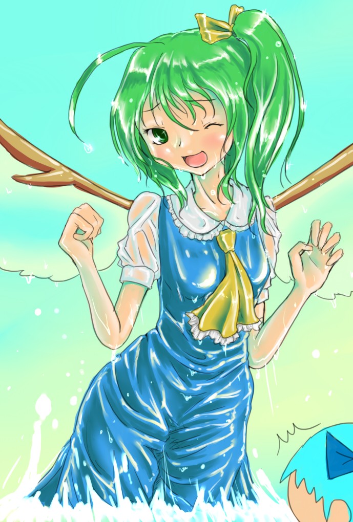 チルノ描いたので 2010年09月12日 着衣泳 4 大ちゃん昨日より丁寧に描いてみたただ、それだけ…いや、自分の中では勝手に、大ちゃんって、普段はチルノの後ろに隠れてたり、引込み思案っぽかったりするけど、実は身体?はチルノよりずっと大人で、ふとした時に見せる表情は…って自分で書いてて気持ち悪っ!!東方の妖精は描いてて楽しいですね~でも、三月精は衣装めんどくさそうだからパスで(ぉぃ閑話インクジェットプリンタを購入しました~!!まだ数枚しか印刷してないけど、うまくいけば次に出す本からカラー表紙にできそうかも~現在なんちゃってPP加工を研究中…↓↓最近貼るの忘れがちです… PR