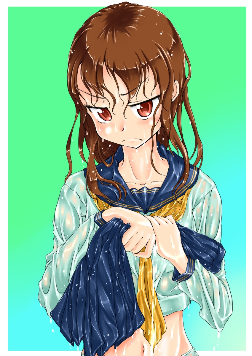無題 2012年07月14日 制服濡れ 5 「なによ?こんなところに座らせて」「・・・って、ちょっと!!」「あぷっ」「・・・」「ん゛~~!!」「ぷは・・・」「あのさ・・・あんた一体どういうつもりなの?」「怒ってるに決まってるでしょ!?何でいきなり水・・・」「ちょ」「あ゛あ゛~・・・」「・・・満足?まだ足りないの?いいわよ、もうこうなったらどうせ同じだから」「いくらでもかければ・・・!?」「・・・えっ?」この後ローションプールに沈められ、上がった所にシャンプーされて、綺麗にお湯で流され、くまなくドライヤーで乾かされて最初にもどらされました。という妄想の産物初めてではないですけど、表情の差分に眉口目の組み合わせ、濡れる前と後、液体表現の差分約6枚くらいでよくあるエロゲの差分遊びをしてみました~結構描いてて楽しかったので、また気が向いたときにでも違う衣装でやってみようかな?最大の欠点は恐ろしく時間がかかることですかね・・・でも濡れる前と濡れた後描くのは楽しいですね!!いつの日かプールに突き落とされて上がってくる本格的なWetアニメを作りたいもんだ(ぉぃ