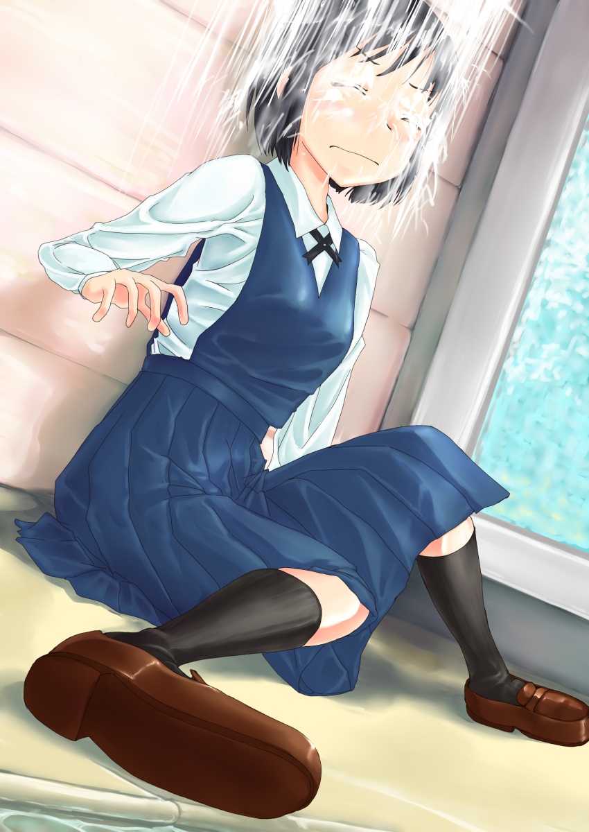 お疲れ様でした… 2012年06月24日 制服濡れ 3 水に抱かれてから発想を受けた作品って、きっとこの界隈だと沢山あると思うんですよってことで、参考にして描いてみました~でも、リアルであーいう風にモデルさん使って写真が撮れるのって、いいですね~自分も一回くらいやってみたいもんですよ(といいつつ何回でも撮影しちゃいそうですが閑話それにしても、衣替えしてからというもの、中々気温が上がらなくて、中間服なJCJKが街に溢れているのは良い傾向ですな!冬服もいいですけど、あの長袖ブラウスが濡れてべったりと腕に張り付いてたりする感じも捨てがたいですからね~それに多分中間服の時期って、ジャンスカ制服が一番輝く時期だと思うんですよ!ってことで、次はジャンスカでも久しぶりに描いてみるかな~?