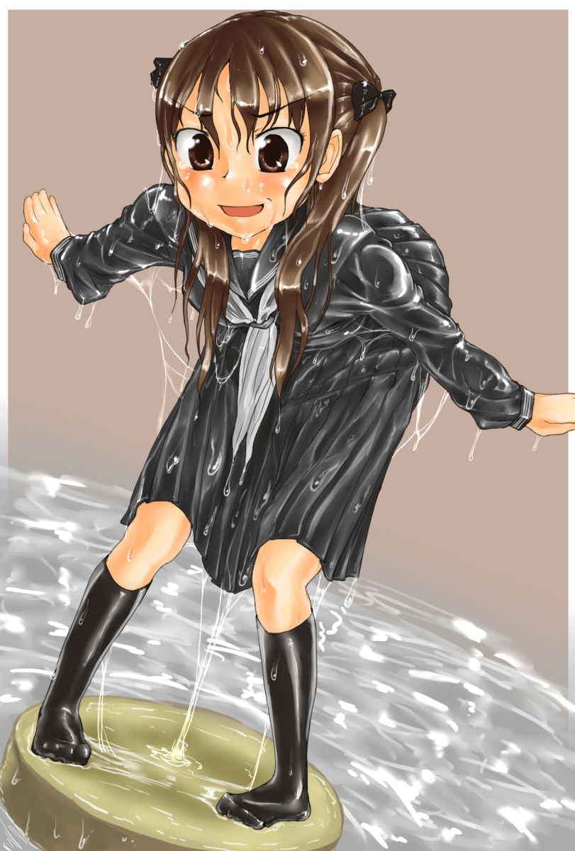 受験生のみんな~頑張ってるかな~? 2011年01月15日 スライム 0 センター試験て今日明日だよね?ということで年明け、受験生の女の子が、願掛けに立ち寄った人気の無い神社で、絶対に受験に成功する「神事」がある事を神主から聞くそれならやってみようということで、軽い気持ちで頼んだところ…直径50cmくらいの丸いお立ち台の上に案内されるなんでも、この上に出来る限り立っていなければならないらしいふーん、それだけ…と思っていたら、神主に突然、清めのろーs水をぶっかけられるいきなりの事に驚き、足を滑らせてお立ち台から落ちると、いつの間にかそこには大量の清めのろーs水で満たされたプールがプールから顔だけ出して、目を白黒させていたら、周りから「ほら立て!やれ立て!」と掛け声がさっきまではあんなに閑散としていたのに、いつの間にか黒山の人だかりにで、まあ訳もわからず必死になってお立ち台によじ登る→滑って落ちる→よじ登る→落ちる…を繰り返す制服や髪はは肌にべっとりと張り付き、プールに落ちる度、ろーs水を浴びせられる度に体中ぬるぬるにまみれるそれでも必死に立ち上がり、生まれたての小鹿のように足を震わせ、踏ん張れば踏ん張るほどに滑り、落ちるやがて、疲れから意識が遠のきかけた頃、ようやく神事がおわりを告げる気がつくと、そこは先程までと変わらない神社人っ子ひとり、神主の姿すら見えない呆然とする受験生夢…?…そうだとしたら…何で私はこんなにぬるぬるになってるのよ!!?受験生は憤りながら、神社の石畳をつるつる滑りながら帰りましたしかし、神事で滑りに滑ったせいでかどうかはわかりませんが、無事志望校へと合格できたそうな…そんな、不思議なお話…という脳内の妄想を参考に描きましたいやー俺、アホだね~妄想乙だね~まー今に始まったことじゃないか~あと、拍手いい加減に変えないと…