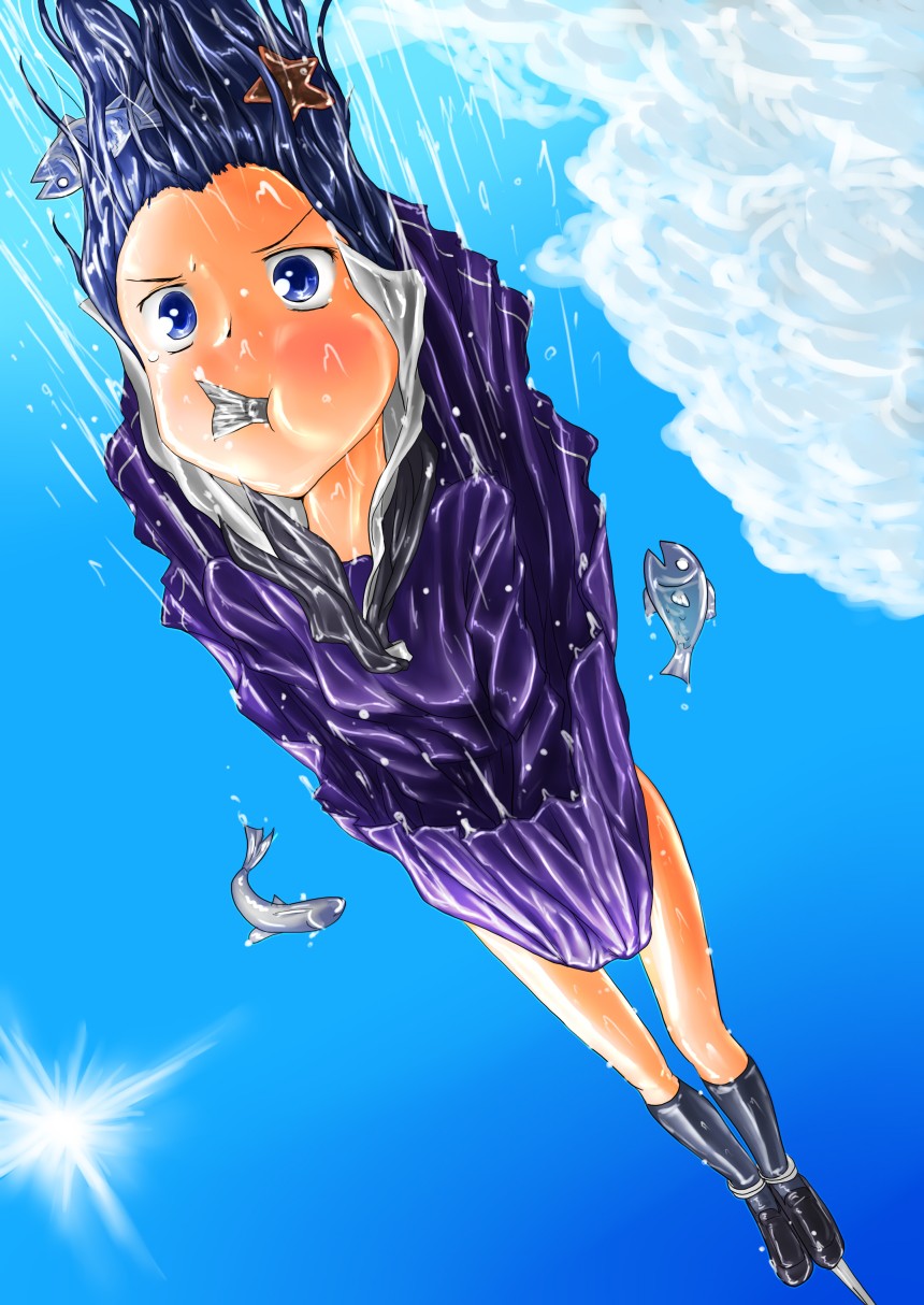 夏らしい絵を 2010年08月05日 制服濡れ 4 と思って描いた結果がこれだよ!!ある意味最強の生き餌っすね…昔漫画とかでよく人間を生き餌にしてサメを釣ってやる~とかいう悪役が出てきたりしてましたが、最近はあんま見かけないですね~なんで?まあとりあえず絵の設定は外洋じゃなくて、生け簀に見学に来てた娘があやまって落下→どういうわけかロープが足に絡まって、釣られるって意味わかんないし!(いつものことですが)