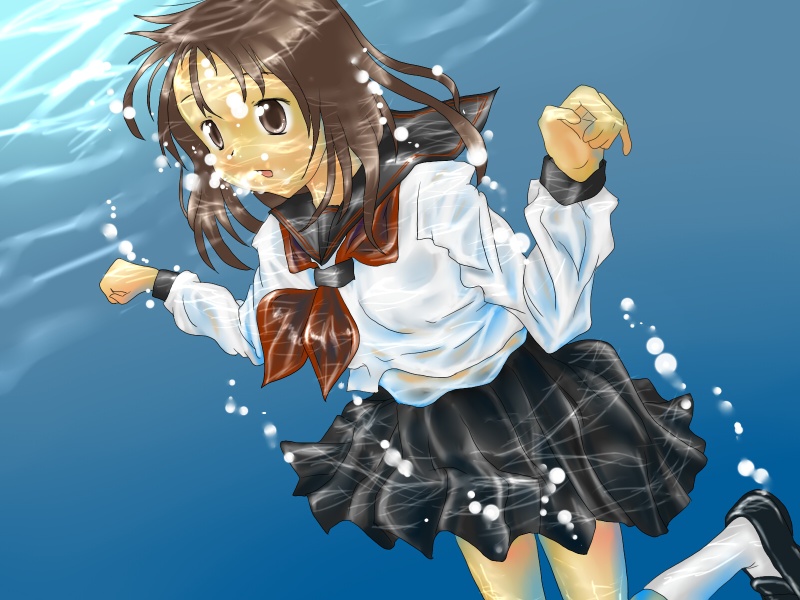 UW→OW 2009年10月31日 制服濡れ 5 こんな風に、水中じゃひらひらしてるのに、水から上がるとぺったりしちゃう姿が好きですだから多分、UW属性ではないと思う。自分はなぜならUWは着衣じゃないとあれだし、水から上がった時を想像しているような気がするからなーんて、久しぶりの更新でした…このところ、一週間に一回すら、更新できないorz