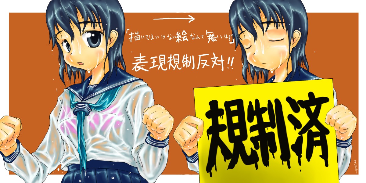 エロゲ販売規制問題2 2009年06月26日 雑記 0 もしかしたら、そう遠くない未来の話かもしれませんリンク先のリンク先にて素晴らしい絵を発見、触発されました↓けそなんばーずさん(※リンク先には未成年に有害なコンテンツが含まれています。18歳未満の方の閲覧はご遠慮下さい。)ttp://kson.jp/あとこちら↓フラットラインさんのとこの6/25の雑記を読んで…~※~どんな絵でも政治を絡めたら、それは立派なプロパガンダだけど…それでも描きたいと思って描きました以下に関連リンク張っておきますので、興味を持たれた方は是非、今何が起こりつつあるのか調べてみてくださいませm(__)mエロゲ販売規制問題まとめwiki警察庁の『漫画・アニメ・ゲーム表現規制法』検討会問題まとめ @Wikアダルトゲームと表現の規制 - Wikipediaの検索結果byGoogle出すぎた真似をしました~さっさと「せ」と新プロジェクトの作業に戻るぜ~二次元制服濡れフェチを、いつまでも楽しめますように(_人_)