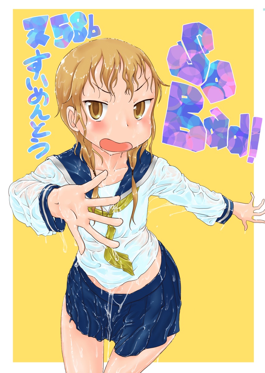 続き~ 2010年10月02日 イベント 2 前回の続きです正直な話、自分の為~とは言いつつも一連の記事を見て、あー自分も濡れた絵描きて~ってなってくれる人を期待してたりします何てったってニッチなジャンルですからね~他の人の濡れ絵をもっと見てみたい!できるだけ、質問には答えるようにしていきたいです…ここに書き込む気がひける方は、拍手でも何でも良いので言ってみて下さいませ~まあ、わかる範囲と言うか…私なんぞで良ければ答えますそこら辺は適当で~三回目~背景塗り 背景の前に、人物の下塗りをする。とりあえず人物以外の所をマジックワントで選択。 選択し終わったら、選択領域の反転で、人物を選択状態に。 かつてペン入れしてたツール。今は広範囲を塗るだけになってる。これでがーっと塗ると。色は肌色に近いオレンジ。何色でも良いと思います。新規レイヤに塗るのを忘れずに。 塗り残しとかはみ出しは、後々修正するので、いまはこれでOK。 背景用に新規レイヤを作成して、空と海?を塗る。イメージは朝、薄曇りの海。コピックってありますけど、要はさっきガーって塗った奴の細いバージョンみたいなもの。とりあえず大まかに塗る。後で修正すればいいはずなので。 ぼかしツールを用意。あんまりぼかしたくないときは細い設定で、グラデーションみたいにしたいときは太い設定で。一番使ってるかも。 今回は背景の下塗りを生かすため、中くらいの太さでぼかす。後々波の光と影の部分になるので、まだらに色を残す。 水彩筆を用意する。設定は上のような感じ。混色、色伸びともにあんまり使わない。というか使えない…イメージとしてはコピックみたいな使い方? さっきのまだらを活かしながら、色の濃い所を選ぶように適当にささっと塗っていく。後で修正が(ry塗り終わったら再びぼかす。 フィルターをかける。今回は昔の写真の色みたいなレトロな感じを意識して多少暗くかける。暗くすることでこの後光の部分を塗っていく時にメリハリがつくので。 雲になる部分と波の光の部分をササッと水彩で塗っていく。大体後でぼかすので大雑把に細かくはしない。 ぼかす。ぼかし依存症気味かも…でも、SAIはこのぼかしツールが優秀すぎるので、使わないのは勿体無い気がします。ペインターはウチのパソコンだと激重だけど、SAIは動作が軽いのも魅力ですね。 何となく色が薄かったので、色を濃くする。自分だけかもしれないけれど、大体カラーの明るさと濃さの範囲を出来るだけ広く使った方が、表現としてまとまりはないけど豪華になる気がします。あくまで気がするだけですが。 とりあえず背景はこのへんにしておいて(後で修正します)、人物に取り掛かります。塗る順番としては、肌から外側、上から下へ行くように塗ります。今回はできるだけレイヤをわけて描きますが、全部同一のレイヤで塗っていく方法もあります。その場合は下絵→上塗り→細かいところと、厚塗りの基本で塗っていくので、そこらへんはここよりももっと上手い説明で、達人な絵師様がごろごろしているので、そちらを参考にする方がいいかも~SAIのWikiとかのリンクをたどっていくと、良いこと歩きがします。 人物の下絵の上に、肌用のレイヤを作ります。このとき下のレイヤでクリッピングしておくと、範囲選択しなくてもはみ出さないので便利です。 色はとりあえずここらへん。人物の肌色は最終的にフィルターをかけることが多いので、正直どの色で塗ってるとかないです。過去の絵を見ればわかるとおり、すっごく適当でめちゃくちゃです。その時その時の直感で選んでます。個人的には赤っぽい肌色→黄色っぽい肌色の順に影→明るいところって感覚で塗っています。コツとしてはあんまり黒を混ぜない(思いっきり混ぜてますけど)、色の濃さだけを変えるのではなく、色相も変えて行くと深みと言うか、のっぺりした感じにならず、沈んだ感じにならないような気がします。 影→光の順に、先程から使用している水彩で塗っていく。塗り終わったら適当なところをぼかす。急に角度がついている所はそのまま、段々と球面のように角度が変わっている所はぼかす感じ。 逆行度合いが少なく感じたので、影を濃くするためにを混ぜる。でもこれは黒くしすぎorz。塗ったらぼかすのくりかえし。 黒くしすぎた場合は、明るい色でごまかす。塗ったらぼかす(ry 最終的にこんな感じに落ち着きました。肌は後から修正するので(ry 肌にピンクっぽい色をおいて、血色良くみせる。照れてたりするのを表現する時は、鼻の上まで塗ったり、もっと赤めの色にするといいかも? ぼかしで目立たないようにしつつ、わかるような感じで。この段階だと、明らかに失敗してますが。まあ、肌は(ry 影をさらに薄くする。こんな所で一応、肌塗りは終わりって感じ。まだハイライトは入れないので、正直よくわかんないんだけど、この先服とか塗るときの目安になる所だし、大体どの人物も、肌色だけは変わらない